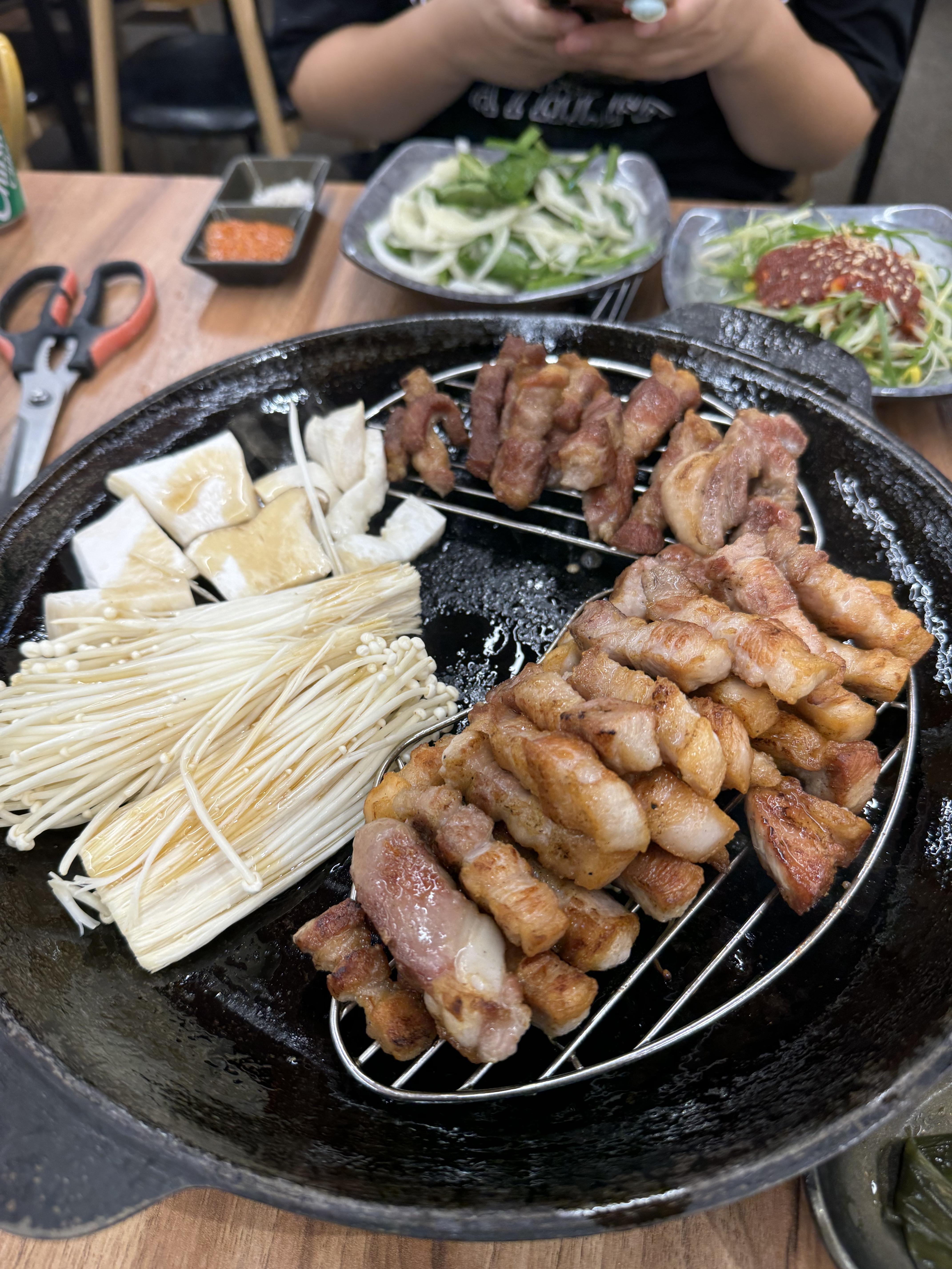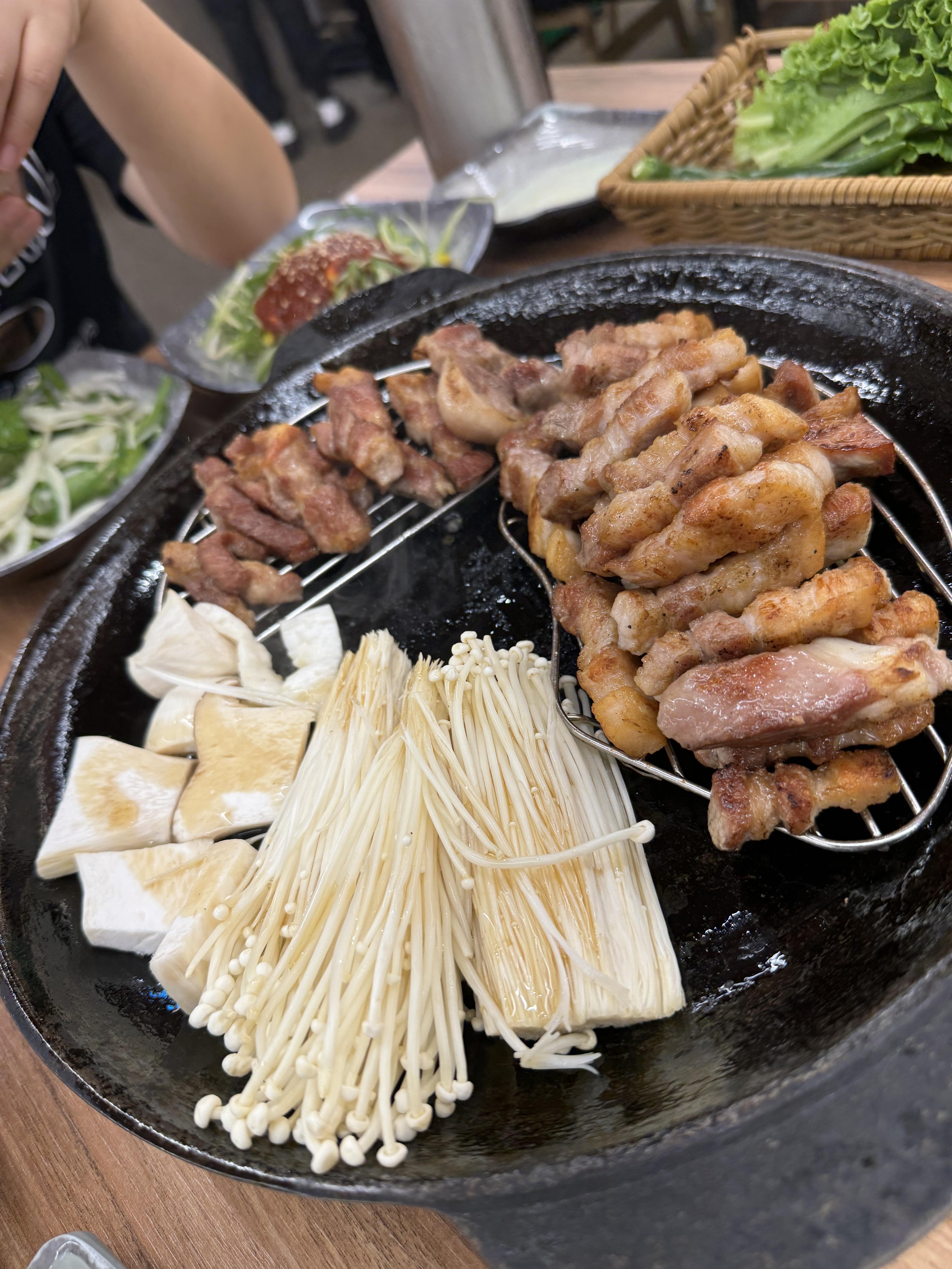 버섯은 가져와서 언제 올려야하나 생각하고 있었는데 직원분이 냅다 올려서 센스있게 구워먹었답니다.