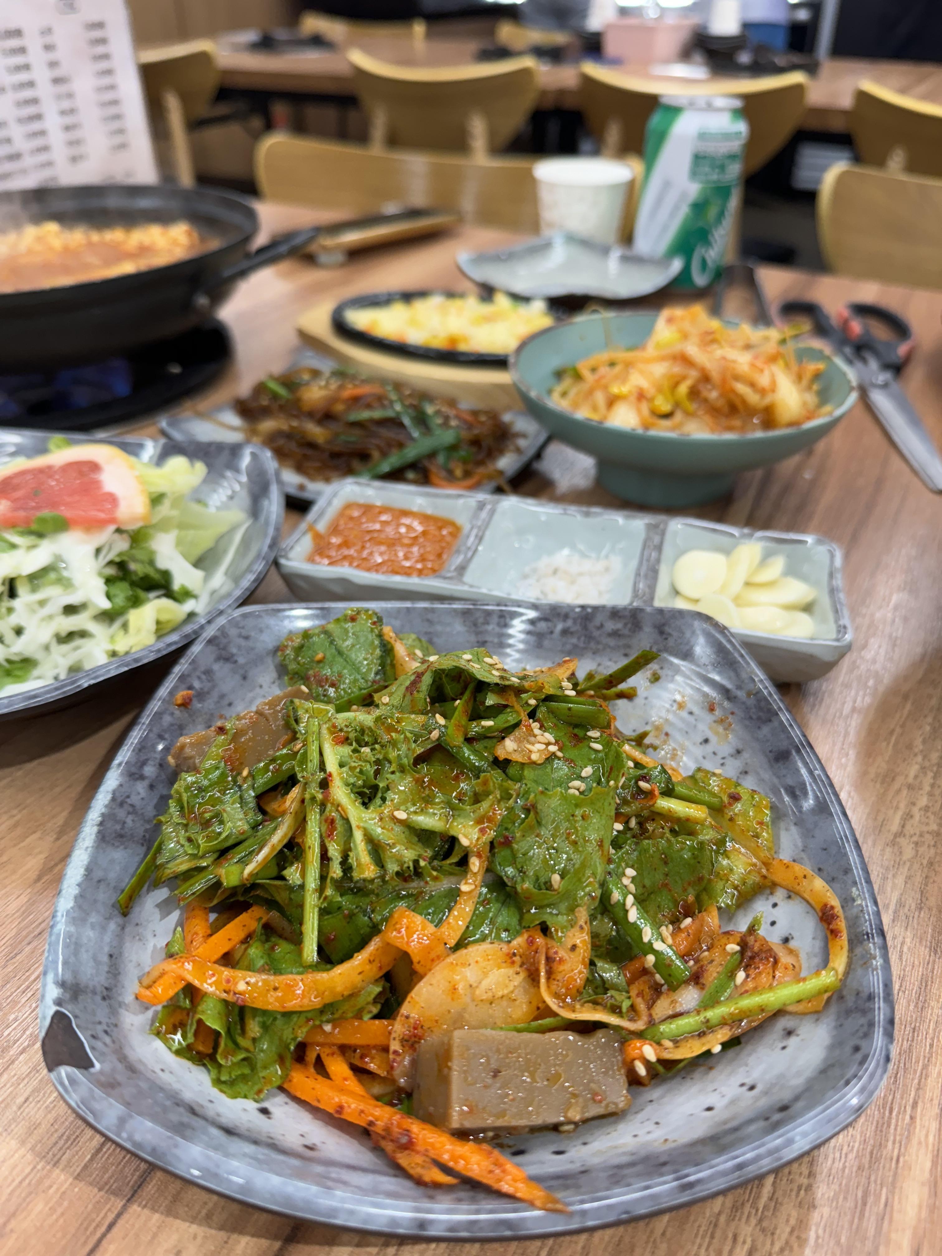 개인적으로 삼겹살에 볶은김치, 콩나물 불판에 한번 짝~ 구워서 기름장 찍어서 상추, 깻잎 쌈 싸 먹으니 진짜 고삐가 풀리는 것 같았답니다.