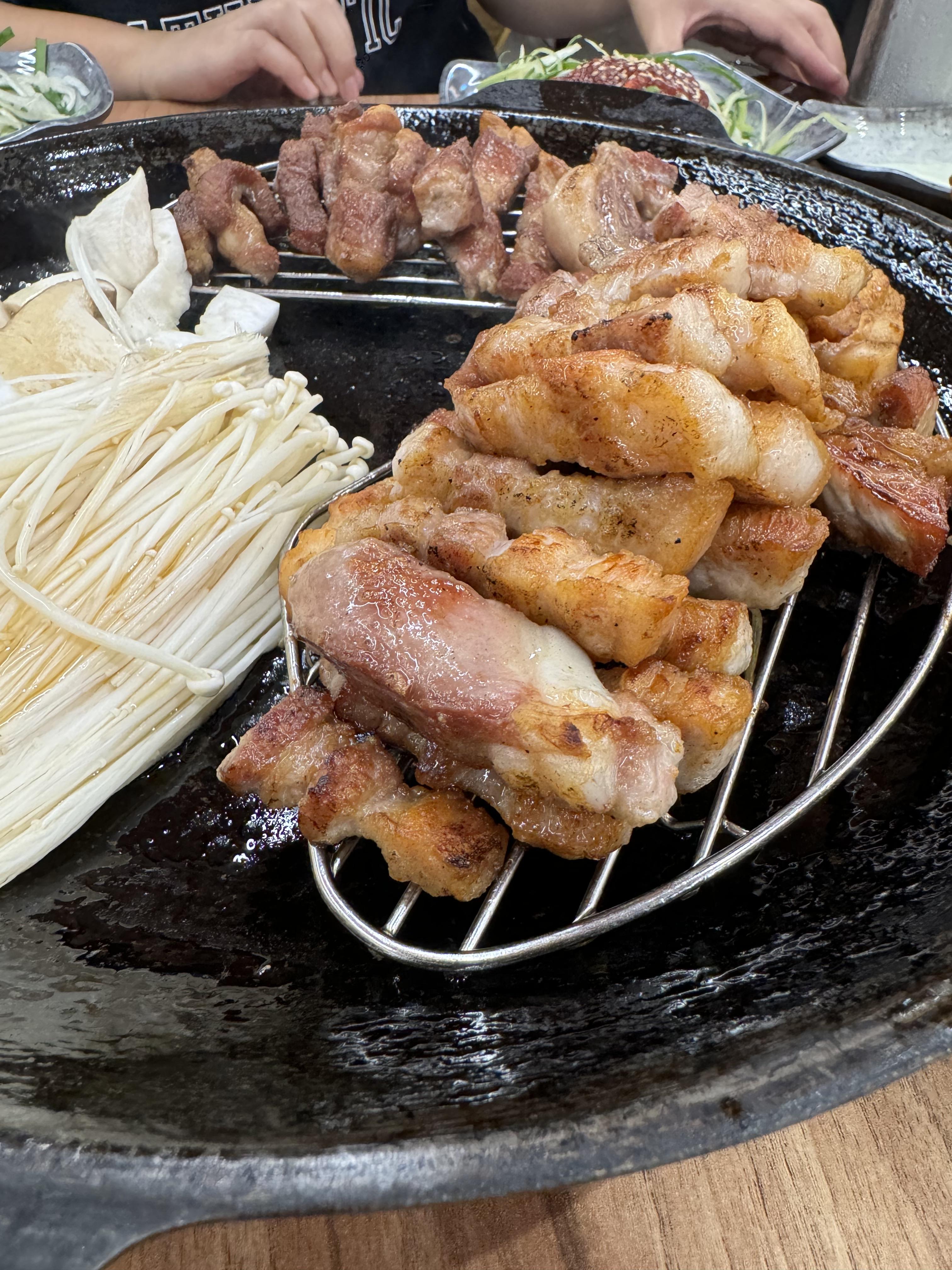 고기가 구워져서 오는데 불판 위에 예열로 온도 유지 하니 고기가 딱딱해지지 않아 좋았습니다.
